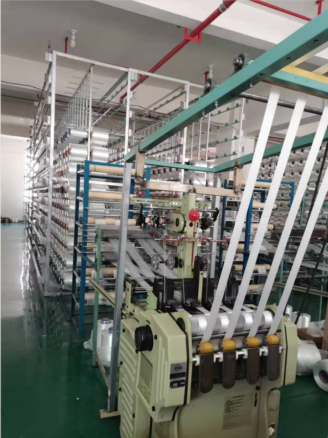 圖為我們公司正在運行的織帶機